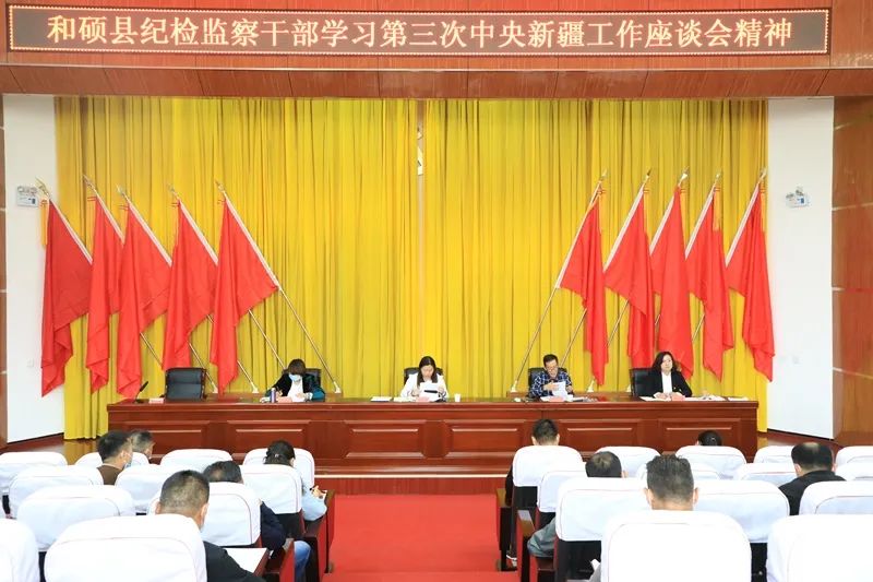 和硕县纪委监委召开专题会议,传达学习第三次中央新疆工作座谈会精神特别是习近平总书记重要讲话精神。该县纪委监委负责人倪桂艳在会上要求,“打铁必须自身硬”,我们要学深悟透第三次中央新疆工作座谈会精神,坚持集体学习与个人自学相结合、线上培训与线下培训相结合、理论学习与实战练兵相结合,做到学有所获、学以致用,传承红色基因、弘扬马兰精神,锻造纪检监察铁军。