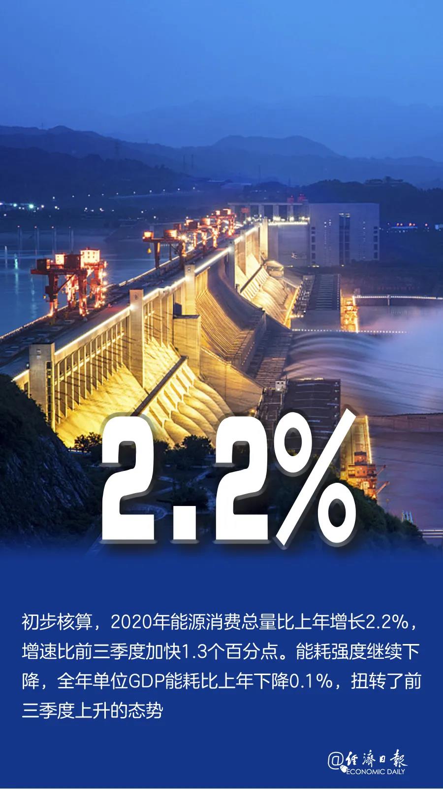 2020年,我国经济社会秩序持续稳定恢复,能源需求逐步回升。初步核算,全年能源消费总量比上年增长2.2%,增速比前三季度加快1.3个百分点,上半年和一季度分别下降0.2%、3.1%。能耗强度继续下降,全年单位GDP能耗比上年下降0.1%,扭转前三季度上升态势;规模以上工业单位增加值能耗下降0.4%,降幅比前三季度扩大0.3个百分点。