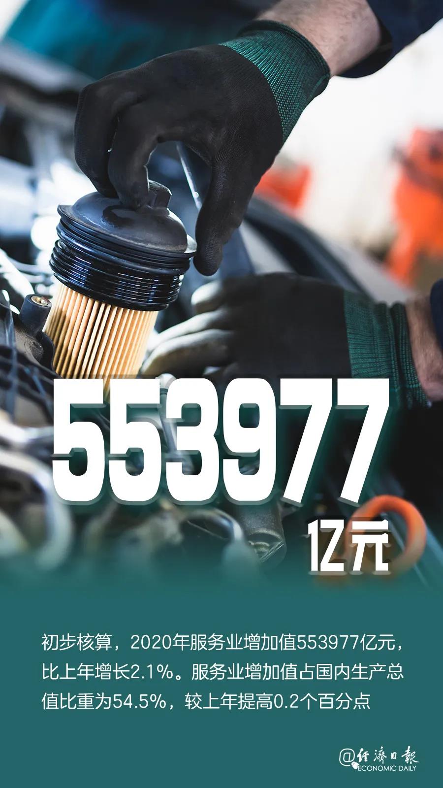 服务业持续稳步恢复。初步核算,2020年服务业增加值553977亿元,比上年增长2.1%。服务业增加值占国内生产总值比重为54.5%,较上年提高0.2个百分点。其中,四季度服务业增加值152728亿元,同比增长6.7%。