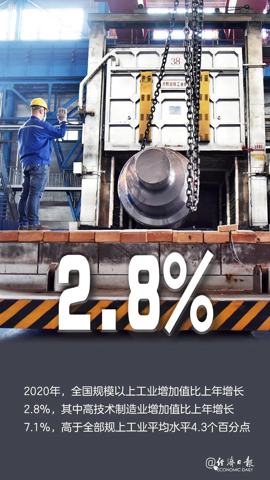 新产业、新业态、新商业模式蓬勃发展,新动能保持高速增长。2020年,规模以上工业高技术制造业增加值比上年增长7.1%,高于全部规模以上工业增加值增速4.3个百分点。以新技术为引领的相关服务业营业收入保持增长,1至11月份,规模以上高技术服务业、科技服务业和战略性新兴服务业营业收入增速分别为12.0%、11.0%和8.6%。2020年,网上商品零售保持较快增长,全国实物商品网上零售额比2019年增长14.8%。