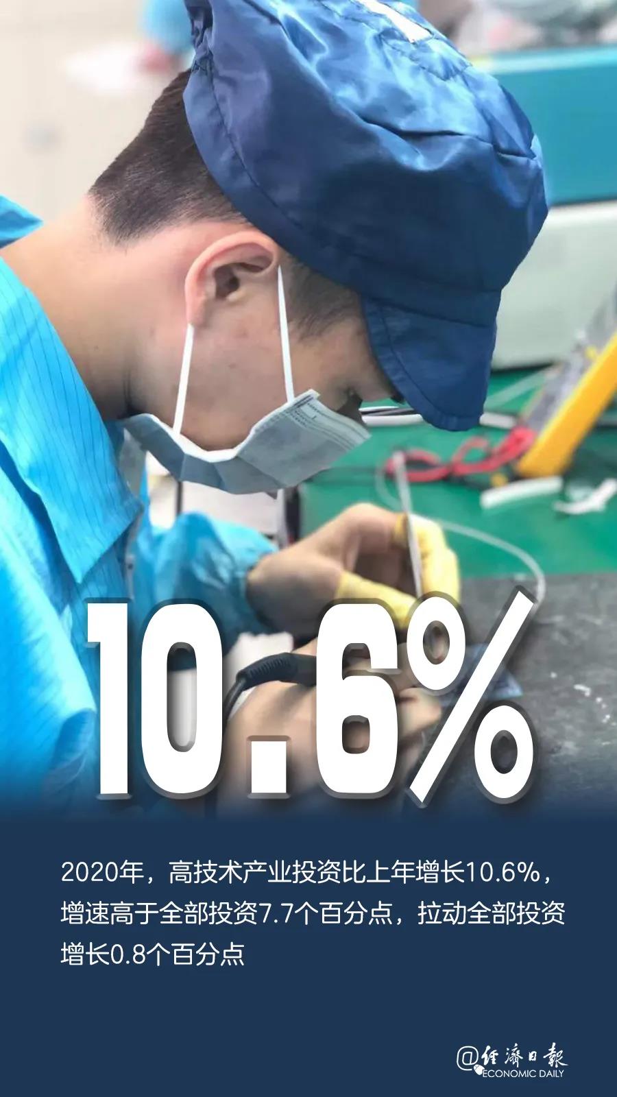 2020年,高技术产业投资比上年增长10.6%,增速高于全部投资7.7个百分点,拉动全部投资增长0.8个百分点。