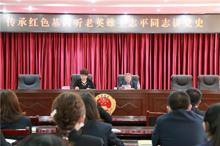 今年93岁高龄的王志平老爷爷,已经有69年的党龄,讲起爱党请、报国志仍然掷地有声,激励着与会的每名党员干部。大家认真聆听,感受历史变迁、社会变革的同时,学深悟透老一辈共产党员们不屈不挠、砥砺前行的革命精神。