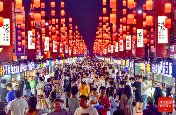 白天逛龙门石窟、白马寺、应天门等景区,晚上到洛阳老城“十字街”品美食,这已是游洛阳的“标配”。目前,洛阳老城“十字街”是游客到洛阳游玩的打卡地,五一期间更是人山人海、熙熙攘攘。(河南省洛阳市纪委监委驻市委宣传部纪检监察组供 李卫超 摄)