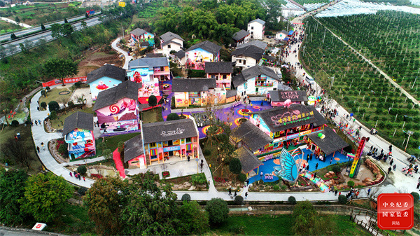 五一期间,重庆市忠县新立镇的“橘源里·糖果小镇”开门迎客,景区将色彩美学和橘乡风情巧妙融合,各个主题民宿附着彩绘艺术画,吸引市民前来打卡。(重庆市忠县纪委监委供 黄明旭 摄)