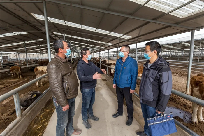 库车市各级纪检监察干部聚焦“四不摘”、扶贫项目管理、惠民资金使用等主要环节,着力发现群众身边的不正之风和腐败问题,为巩固拓展脱贫攻坚成果同乡村振兴有效衔接提供纪律保障。图为该市阿拉哈格镇纪检监察干部在比苏特村万头牛养殖基地收集群众意见建议。(库车市纪委监委 袁欢欢 摄)