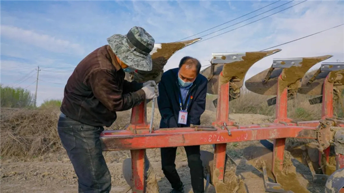 近日,乌鲁木齐市米东区纪委监委组织纪检监察干部深入田间地头走访监督,为群众解忧纾困,以实际行动保障惠民政策落实落地。图为该区纪检监察干部魏志龙前往古牧地镇西工村,向村民了解农机具补贴政策落实情况。(乌鲁木齐市纪委监委 任志豪 摄)