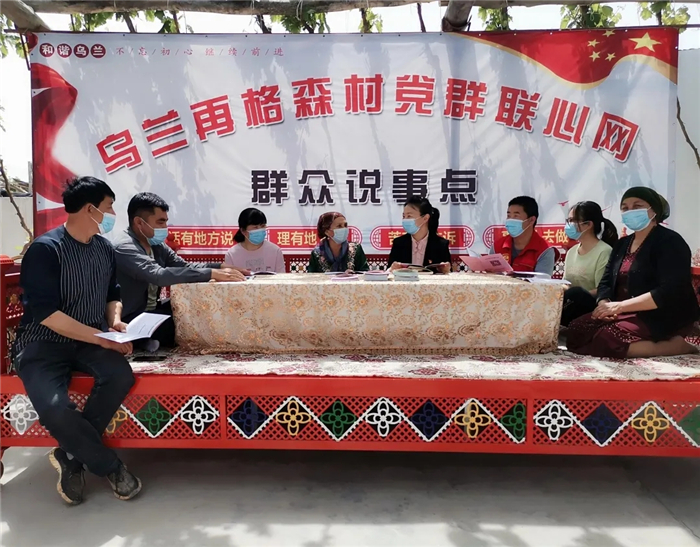 博湖县纪委监委利用“民族团结一家亲”活动,借助“乌兰说事日”平台,聚焦民生领域中群众享受惠民政策中的“急难愁盼”问题,联系行业部门和乡村两级分管干部开展“三方座谈”,对群众在政策享受中要具备的条件、申报流程进行讲解。(博湖县纪委监委 东华 摄)