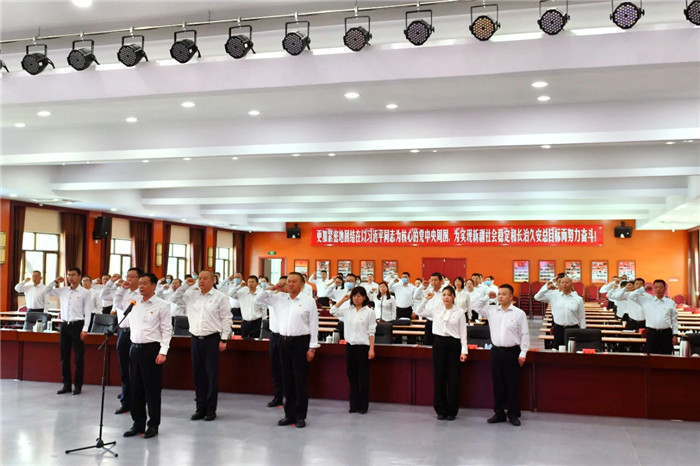 在随后举办的“迎七一·庆百年”重温入党誓词主题活动中,自治州纪委监委领导带领在场全体纪检监察干部重温入党誓词。