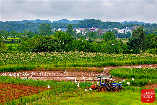 七月的乡村万物繁盛,勤劳的农民驾驶农机在田间地头忙碌,成群的白鹭伴随着农机飞前舞后觅食嬉戏,构成一幅人与自然和谐共处的美丽田园生态画卷。(湖南省泸溪县纪委监委供 胡灵芝 摄)