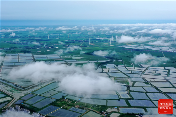 七月的清晨云淡风轻,星罗棋布的水塘好似一块块镜子映照着蓝天白云,形成江南水乡特有的夏日风光。(江苏省淮安市洪泽区纪委监委供 陈凯 摄)