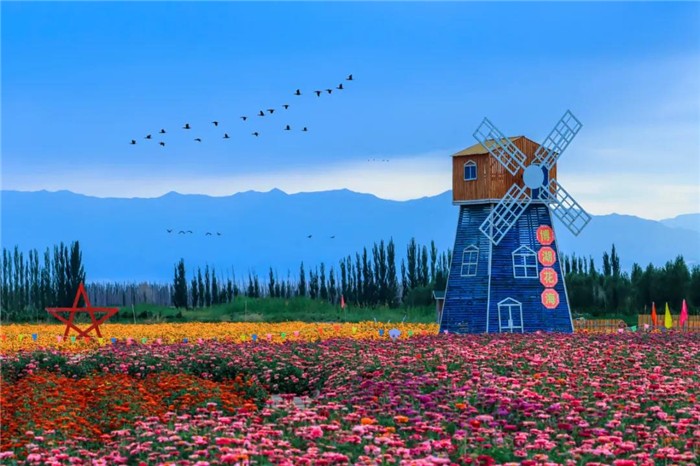 日月不相饶,节序昨夜隔。博湖县乌兰再格森乡花海,一幅崭新的秋日画卷,正在向我们徐徐展开。(博湖县纪委监委 年磊 摄)