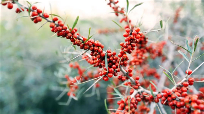 凉微金尚伏,暑炽火初流。乌什县奥特贝希乡野生沙棘林的树上挂满了火红的沙棘果,犹如一串串流光溢彩的玛瑙。(乌什县纪委监委 王永辉 摄)