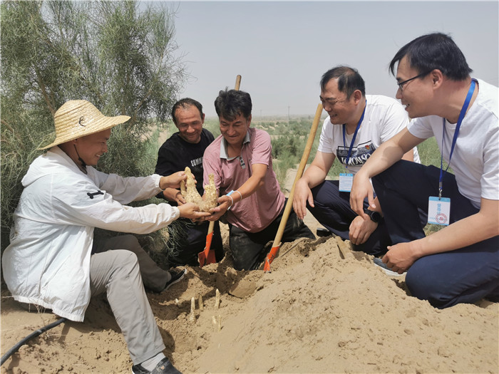 这名叫吐尔迪·吾斯曼的青年原本是巴格艾日克乡的建档立卡贫困户,作为家中唯一的劳动力,他在治沙站挖到了自己人生的“第一桶金”,除了完成集体种植的任务,拿到年底村委会发放的分红以外,他还到企业里去打工,给企业挖大芸,日结工资至少能拿到300元左右。
