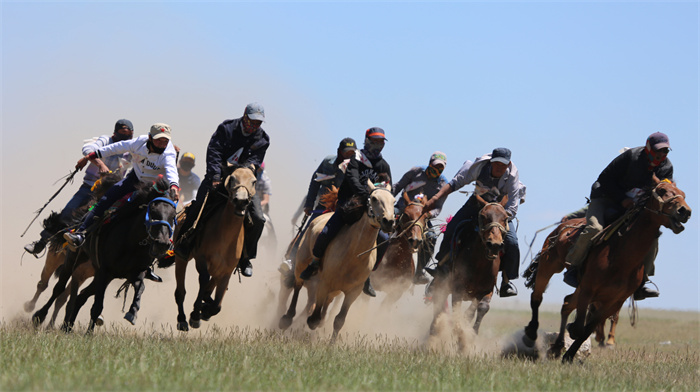 赛马是蒙古族十分喜爱的一项传统体育娱乐活动,被列为自治区级非物质文化遗产。在和静县每年举办的那达慕大会上都会有赛马活动。(赛尔木加甫 摄)