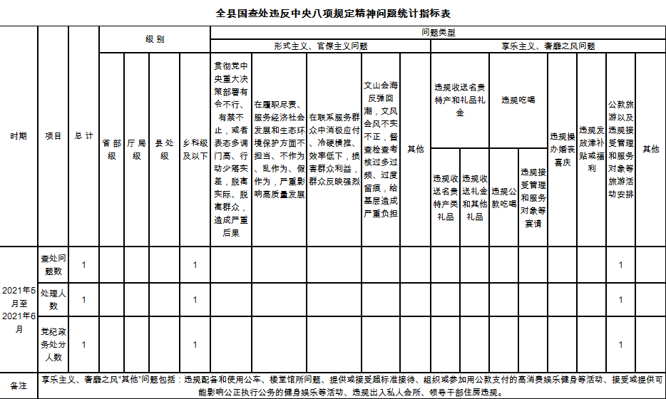 全县国查处违反中央八项规定精神问题统计指标表(5—6月)