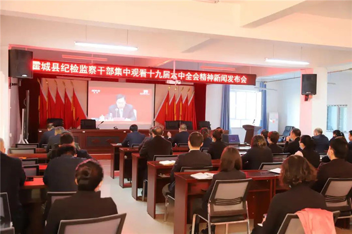霍城县纪委监委集中观看十九届六中全会精神新闻发布会直播,大家表示要以十九届六中全会精神为指引,不断提升监督本领,走好新时代赶考路。(韩庄庄 摄)