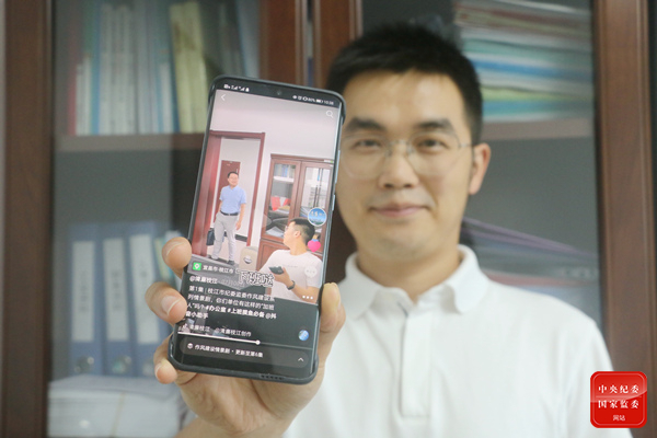 湖北省枝江市纪委监委组宣部干部围绕“二传手”干部、优化营商环境“中梗阻”等作风方面突出问题,自编自导自演系列情景剧,搭建“清廉枝江”政务抖音号、公众号、视频号等平台,积极构建线上“宣教矩阵”,结合线下清廉创建阵地形成立体化宣教攻势,让廉政教育“火”在指尖。(湖北省枝江市纪委监委 任薇 摄)