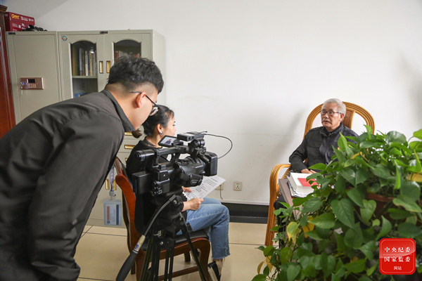 浙江省永康市纪委监委宣传部门着力讲好纪检人故事,以小切口做好视频专访,用vlog等新媒体方式高频、快速传播新闻作品。图为该市纪委监委宣传部门工作人员对纪检老干部进行视频专访,听老干部温情讲述纪检监察事业历史沿革中的精彩故事。(浙江省永康市纪委监委 胡思瑶 摄)