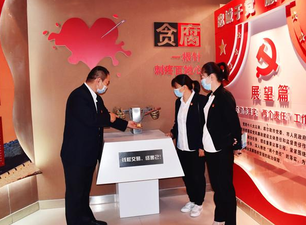 和硕县纪委监委充分依托现有红色资源,以体验式教学代替传统课堂说教,将爱国主义教育基地的宝贵精神财富切实融入到党史学习教育之中。(张红蕾 摄)