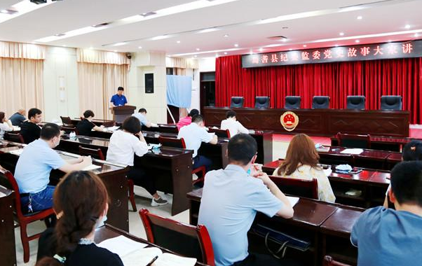 焉耆县纪委监委组织“党史故事大家讲”活动,纪检监察干部轮流上讲台分享红色党史故事,激发大家干事创业热情,营造浓厚的党风廉政氛围。(贾凤娇 摄)