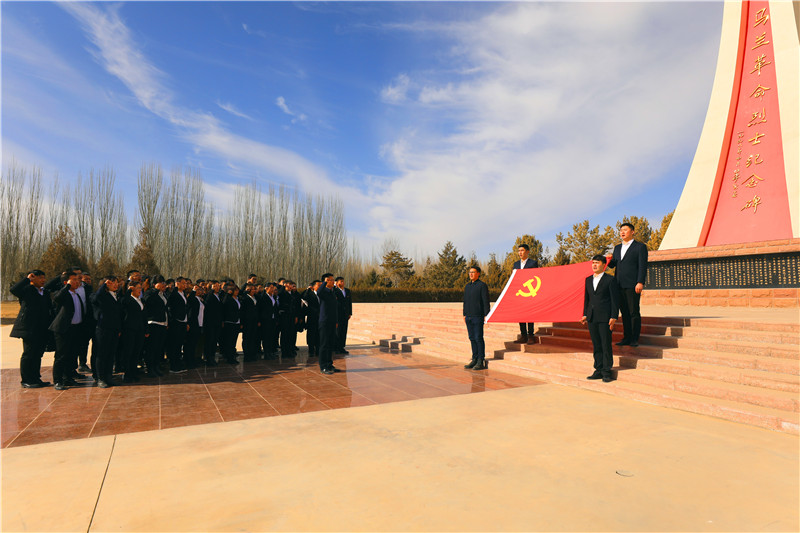 “我志愿加入中国共产党,拥护党的纲领,遵守党的章程……”在马兰烈士纪念碑前,面向鲜红的党旗,青年纪检监察干重温入党誓词。在巴州和硕县马兰部队烈士陵园﹑军博园培训班结合主题党日活动进行现场教学。