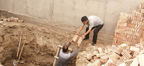 两人说干就干,帮助吐尔地·赫依提选位子、挖坑子、铺砖子、埋罐子,两天的功夫帮他家建成了水冲式的环保厕所。