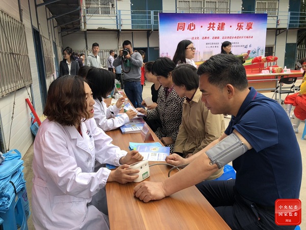 图为江心洲街道为辖区工人开展义诊服务。(南京市建邺区纪委监委供图)