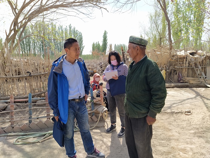 近日,和硕县纪委监委干部在新塔热乡布茨恩查干村走访,实地了解贫困村民如则·亚森家房屋维修情况。